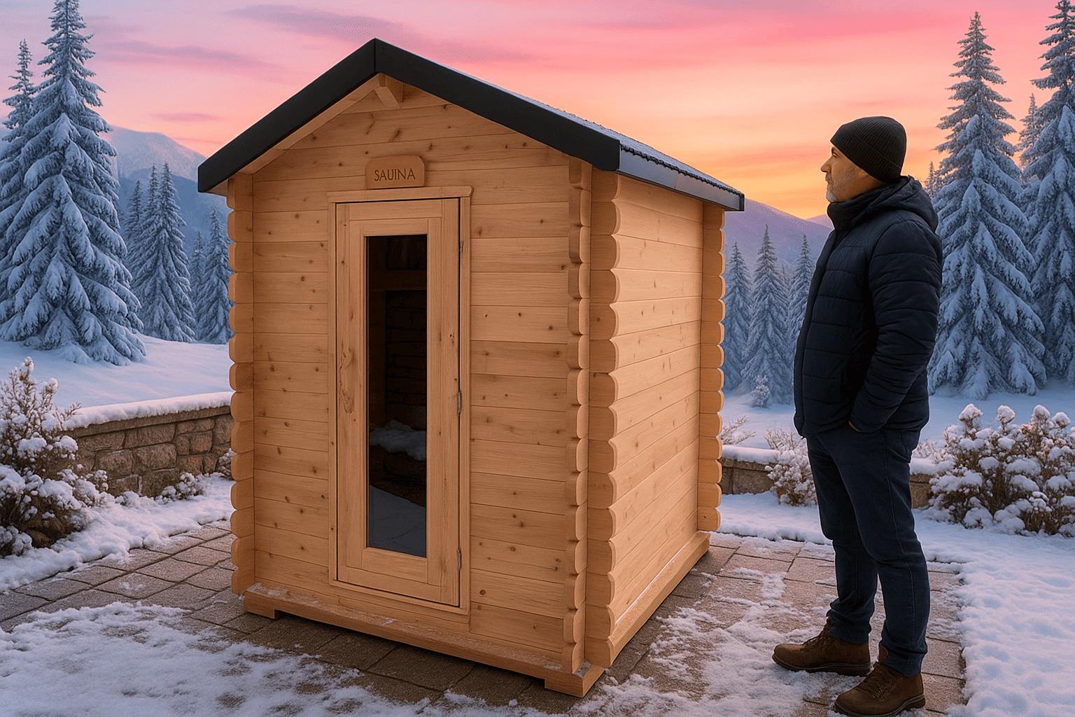 Yes, absolutely. The sauna is designed for outdoor use in all seasons. It features cedar bevel siding for added insulation, marine-grade aluminum bands, and stainless steel hardware, ensuring long-lasting performance even in snowy or rainy conditions.