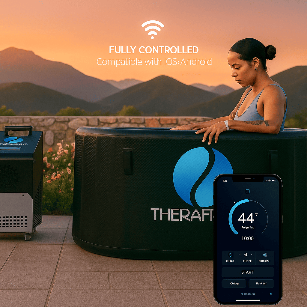 TheraFrost offers complete control right from your smartphone, fully compatible with both Apple iOS and Android devices. You can easily set and adjust the water temperature, schedule sessions, and start the chiller remotely—anytime, anywhere.