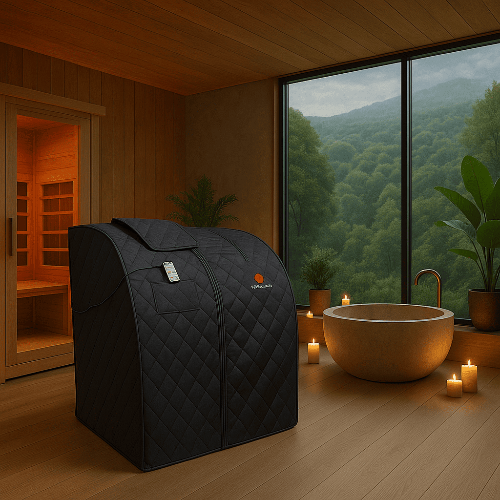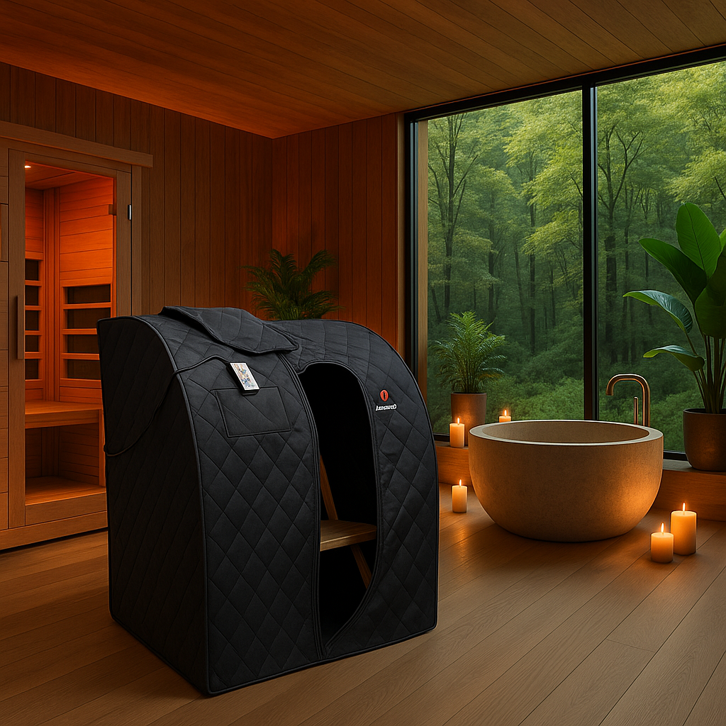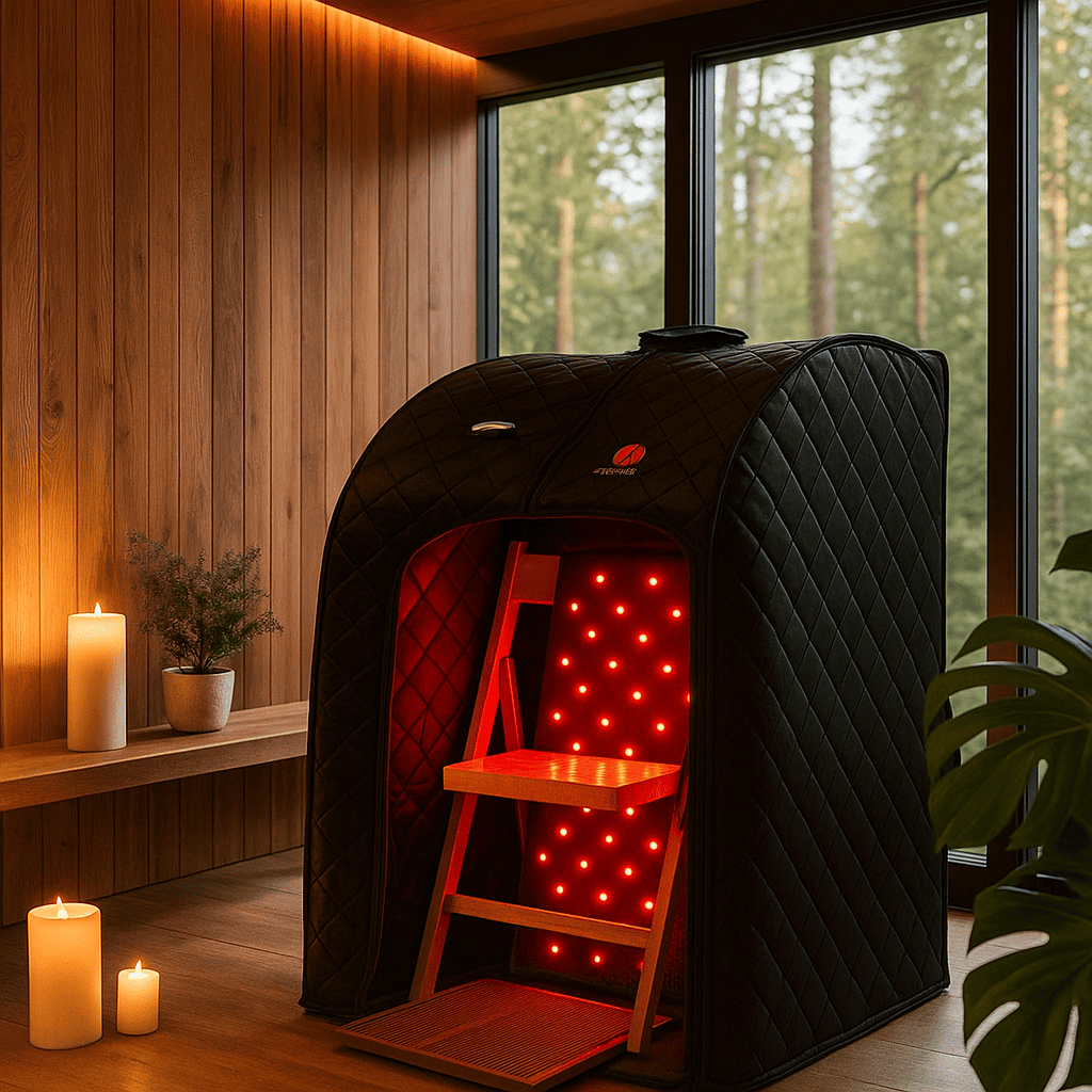 A powerful at-home infrared sauna that naturally supports detox, improves circulation, balances energy, and protects against EMF—powered by full-spectrum infrared, earthing tech, and negative ions in a foldable, easy-to-use design.