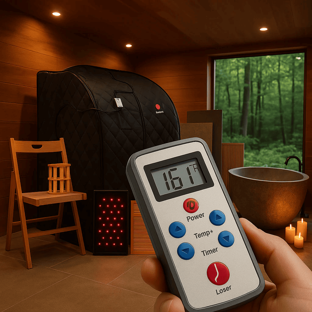 The unit runs on 900W power and supports 110V–120V voltage (220V–240V available). Weighing only 24 lbs, it’s lightweight yet powerful. The sauna meets strict international safety and electromagnetic compatibility standards and is ISO9001 inspected.