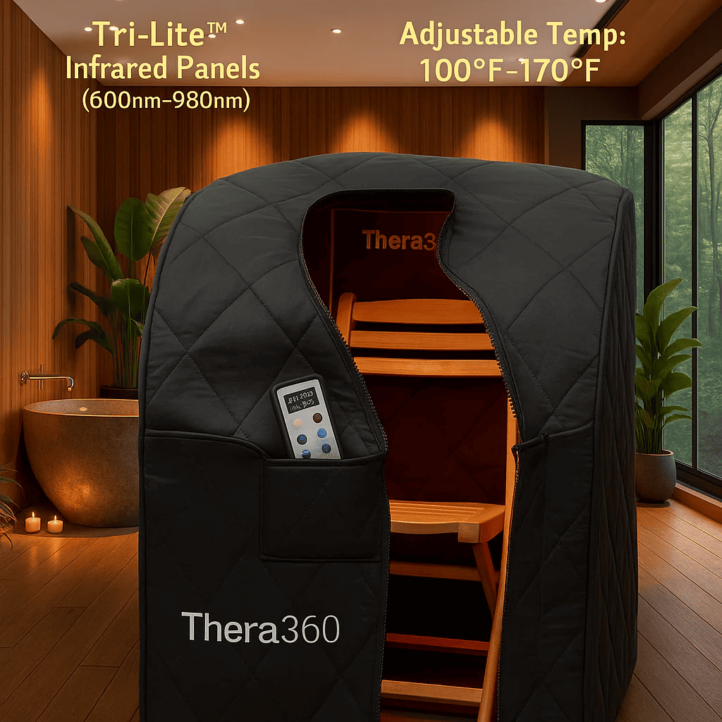 Enjoy full-spectrum infrared therapy with the Thera360 PLUS. Detox, boost circulation, and relax—all from a portable, EMF-safe sauna designed for home wellness.