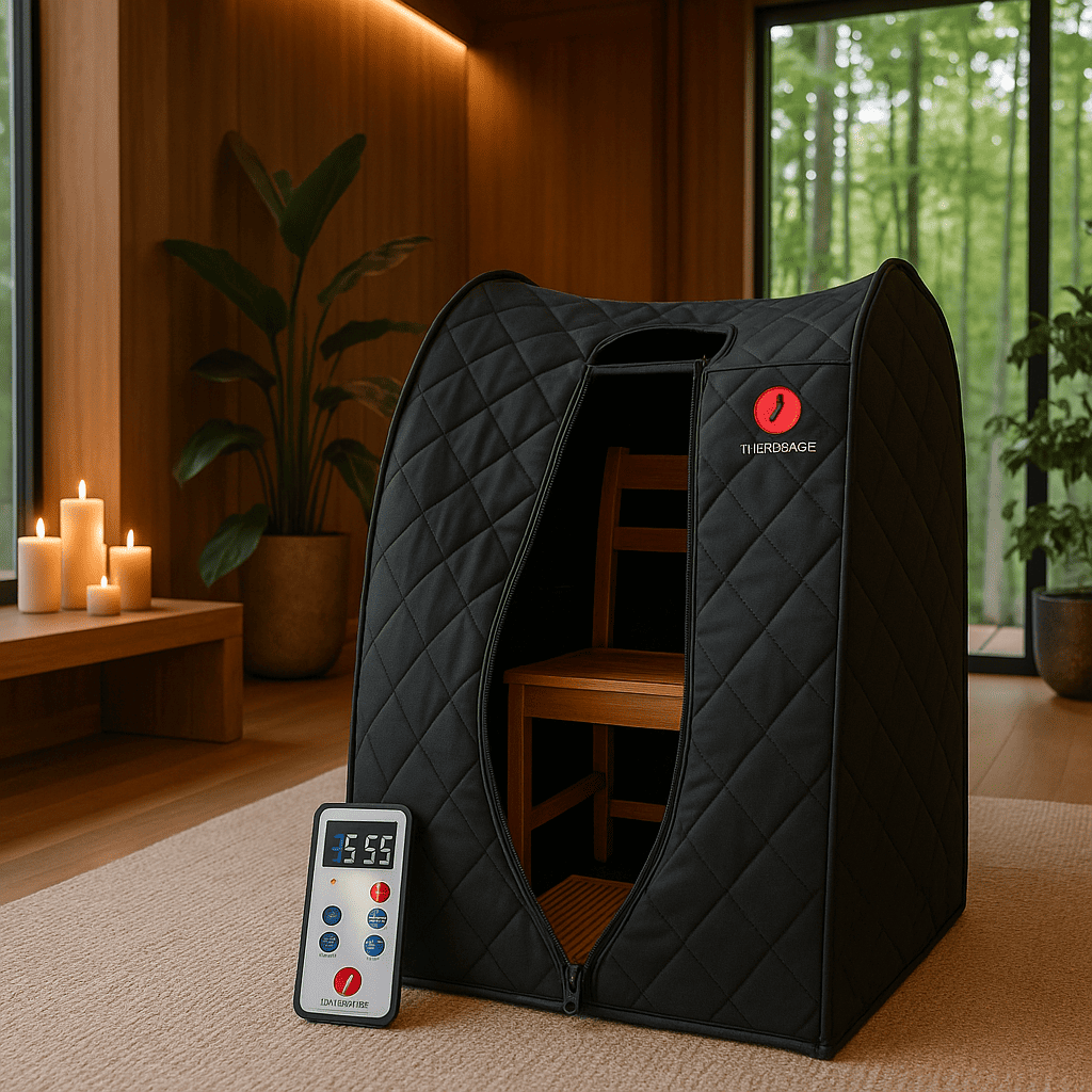 Experience full-spectrum wellness with the Thera360 Plus, a foldable, remote-controlled infrared sauna featuring Near, Mid, and Far Infrared therapy. Equipped with 118 medical-grade photon chips (600–980nm) and Tri-Lite™ panels, it promotes detox, better circulation, and collagen production.